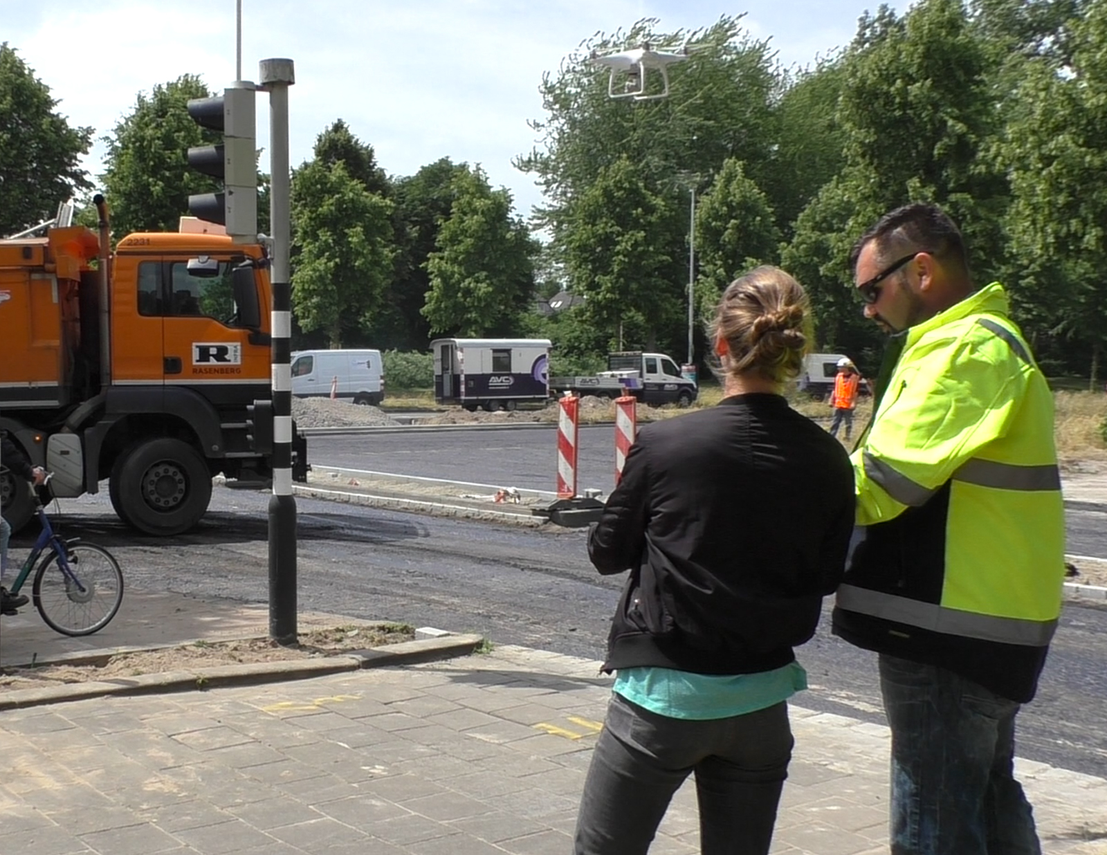 Ons concept is daarom een toolkit om deze problemen in elke stap van het proces op te lossen. Bij dit proces worden o.a. drones ingezet. In plaats van oude satellietbeelden worden live dronebeelden gebruikt. De software neemt de beelden van de drone en herkent zelf objecten zoals bomen en bankjes. Hierdoor kan de engineer er meteen rekening mee houden in het eerste ontwerp. Ook kan de software de data van bestaande leidingen en kabels over de herkende objecten leggen voor een zo nauwkeurig mogelijk beeld voor de engineer. De schouw hoeft hierdoor niet meer te controleren met de tekening omdat de engineer dit meteen al doet met behulp van de technologie die de drone bevat. Mocht er als extra controle toch nog een schouw worden ingezet gebeurt dit digitaal, en niet met tekeningen. De schouw krijgt een tablet mee waar online de ontwerpen op staan. Met een applicatie op de tablet kunnen de ontwerpen in AR worden getoond als je de camera naar de straat richt. je kan dan een punt op het ontwerp aantikken. Ter bevestiging dat je het goede punt aantikt vliegt de drone boven dat punt en wijst ernaar met een laser. Aantekeningen worden doorgegeven in de digitale tekening en worden ondersteund met beeldmateriaal dat door de drone verkregen wordt. Als de ontwerpen klaar zijn worden deze naar de uitvoerende partij gestuurd. Ook de uitvoerende partij kan gebruik maken van de AR applicatie. Dit dient als hulpmiddel voor de uitvoerende ploeg. De kabels worden zo snel en nauwkeurig aangelegd en als het goed is lopen ze niet meer tegen problemen aan waardoor ze ter plekke aanpassingen moeten maken. Mochten er onder de grond verrassingen zijn waardoor toch nog iets aangepast moet worden worden hier meteen beelden van gemaakt met de drone en kan de uitvoerende ploeg live contact opnemen met alle partijen. Wijzigingen zijn dan meteen duidelijk en alle conversaties worden vastgelegd in Organize. Hierdoor is de inmeting en revisie zo gedaan en hoeft hier niet veel tijd in gestoken te worden.