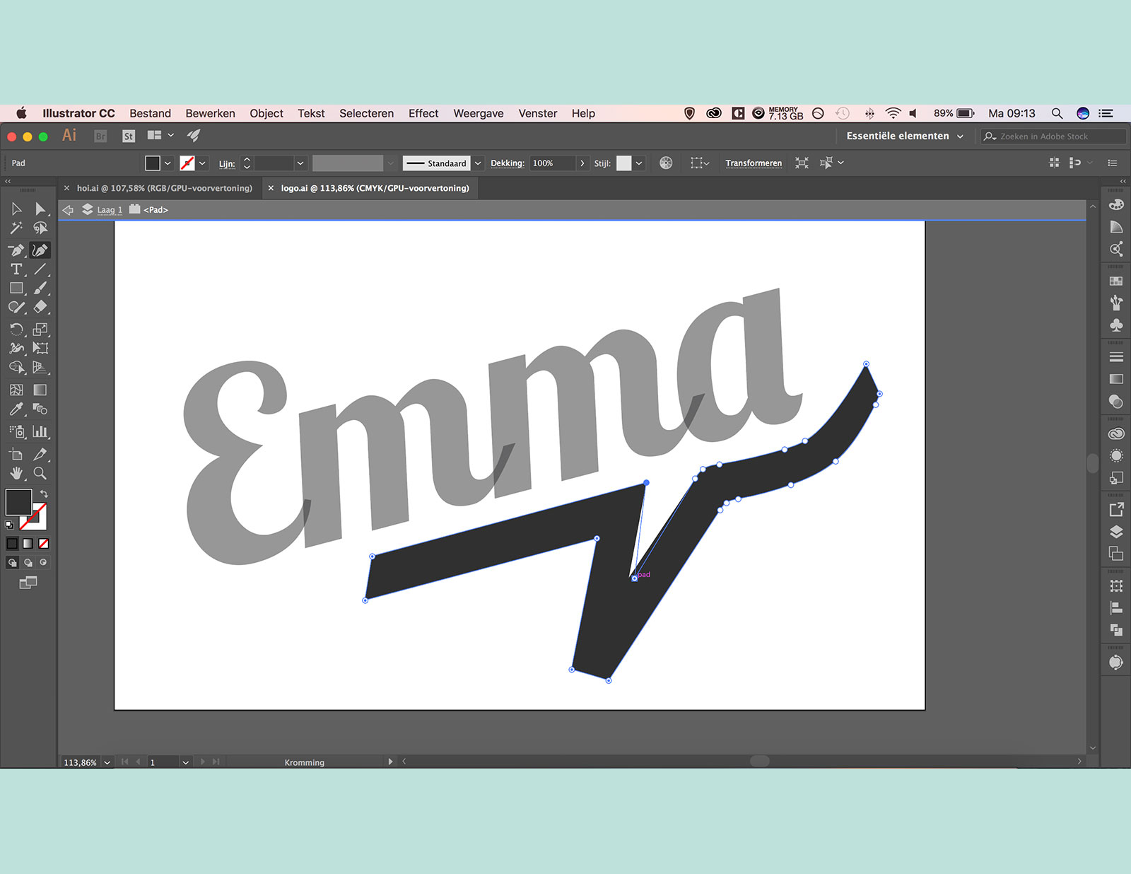De schetsen zijn uitgewerkt met illustrator. Hierna zijn de uitwerkingen van de schetsen voorgelegd aan mijn groepsleden. Er werd unaniem gekozen voor het onderstreepte logo met daarboven “Emma”. Dit vonden zij het beste bij het concept en dus de kernwoorden passen.